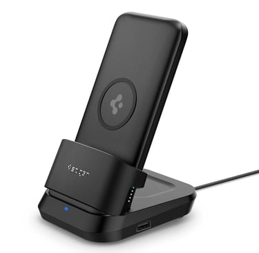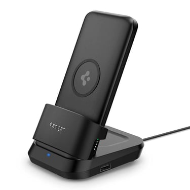 Buy NowSpigen 2 in1 10000 mAh Wireless Charging Power Bank with USB-A | USB-C 20W Fast Charging, Included Type-C to C Cable, Lithium Polymer - Black