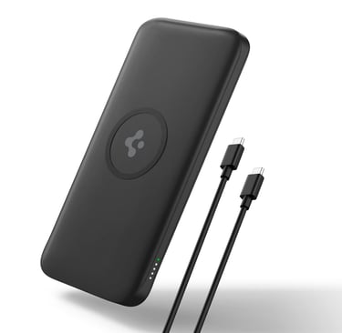 Buy NowSpigen Power Bank 10000mAh Fast Charging, 5 in 1 Wireless Power Bank, Wireless AirPods Charger, TWS Charger, Lithium Polymer, (C to C Cable Included)