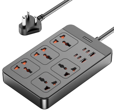 Buy NowAmbrane Extension Board, 4 Type C, 2 USB, 5 International Power Sockets, 2500W Output, Long Cable, Wall Mount Option, Supports Laptop Charging